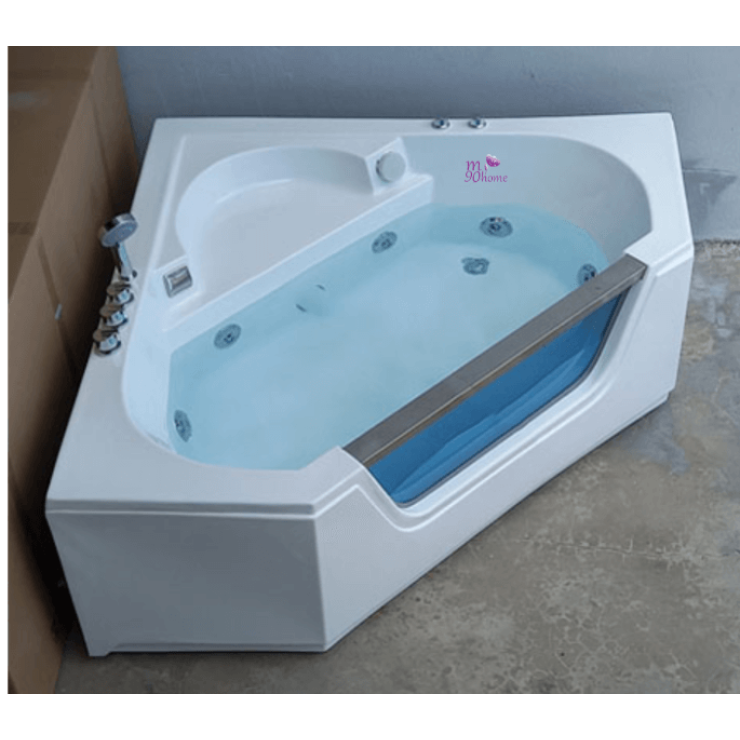 Bồn tắm massage đặt sàn cao cấp với hệ thống sục khí và thủy lực mạnh mẽ, mang đến trải nghiệm thư giãn như spa ngay tại nhà, thiết kế hiện đại phù hợp cho không gian sang trọng.